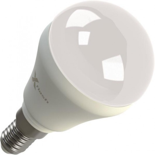Светодиодная лампа X-Flash MINI E14 4W оптимально подходит для всех типов светильников, которые рассчитаны на лампы накаливания с таким цоколем. Колба модели матовая и имеет шаровидную форму. Алюминиевый радиатор led лампы способствует понижению температуры внутри нее, тем самым увеличивается срок службы. Данная модель рассчитана на напряжение 220 В. Мощность диодной лампы X-Flash — 4 Вт., яркость — 400 Лм, а температура свечения – 3000 K (это желтый свет).