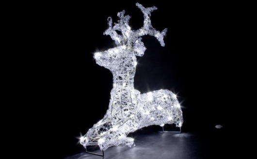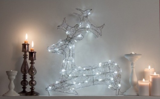 Световая фигура выполнена в виде лежащего оленя размером 47x53x15 см. Красивый благородный олень сверкает 60-ю светодиодами белого свечения, что придает ему особую оригинальность и сказочность.