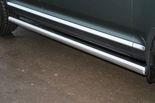 Боковые пороги-подножки сделаны специально для автомобилей Volkswagen Touareg 2006-2009 г.в., поэтому устанавливаются достаточно просто и без повреждений корпуса. Помимо этого, стальные пороги-трубы для Фольксваген Туарег смотрятся очень стильно и эффектно. Они добавят вашему авто еще больше солидности и внушительности.