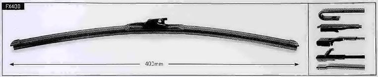 Trico Flex FX400 — это бескаркасная щетка стеклоочистителя, которой вы можете пользоваться как летом, так и зимой. Длина дворника Trico FX400 составляет 40 см. Стеклоочиститель Trico FX400 оснащен мультиадаптером и поэтому легко устанавливается на автомобиль любой марки со следующим креплением: