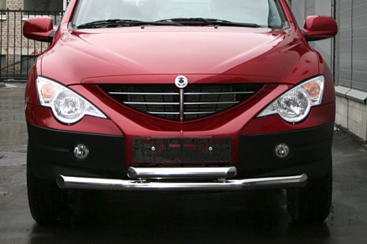 Защита переднего бампера для SsangYong Actyon – это двойная труба на бампер из нержавеющей стали диаметром 76/60 мм.