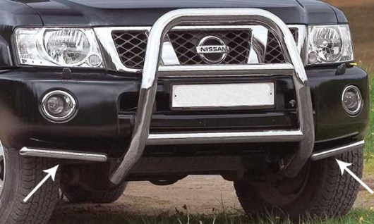 Угловые трубы для бампера Nissan Patrol – это декоративные элементы на передний бампер автомобиля.