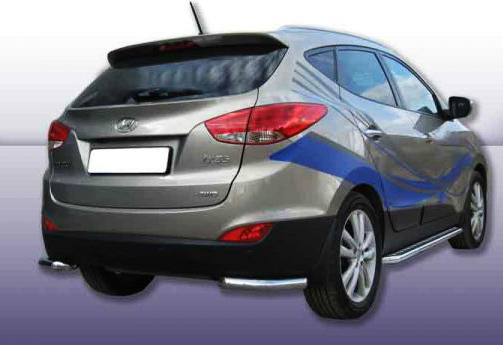 Защита заднего бампера для Hyundai IX 35 – это защитные уголки на бампер из нержавеющей стали диаметром 76 мм.