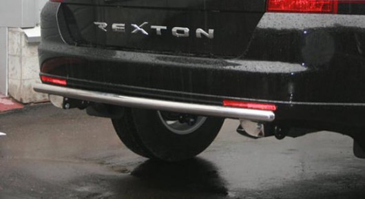 Защита заднего бампера для SsangYong Rexton – это труба на бампер из нержавеющей стали диаметром 42 мм.