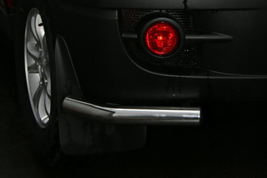 Защита заднего бампера для Ssang Yong Actyon Sport – это защитные уголки на бампер из нержавеющей стали диаметром 76 мм.