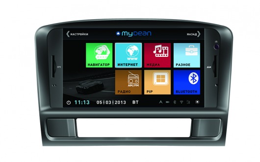 Штатная голова сделана на базе двухъядерного процессора частотой 1 Ггц семейства ARM Cortex с очень высокой производительностью. На ШГУ MyDean 3072 устанавливается операционная система WinCE 6.0 с полностью русифицированным меню. Сенсорный дисплей диагональю 7", с разрешением 800х480 и высокой контрастностью позволяет отлично просматривать фото и видео всех основных форматов, включая видео высокой чёткости HD. Также Вы можете просматривать эфирное телевидение, для этого в штатную голову встроен аналоговый ТВ-тюнер.