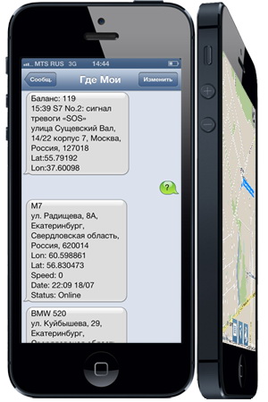 Если же вы захотите получать всю информацию через SMS-сообщения, то это достаточно просто и удобно. Для начала запишите до 10 доверенных номеров, с помощью которых вы можете управлять маяком и запрашивать информацию. Далее запомните номер SMS-центра «Где мои»: +7903797636. А потом выберите интересующий запрос (ниже) и пошлите его на указанный номер:
