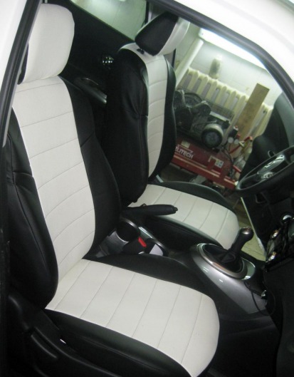 Автомобильные модельные чехлы для Nissan Juke (черно-белого цвета) полностью повторяют контуры штатной обивки сидений. Вы можете быть уверены, что такие чехлы на сидения не потеряют форму даже спустя многие годы использования. Модельные чехлы "Автопилот" допускают использование штатного подогрева сидений, а также подходят сидениям с подушкой безопасности.