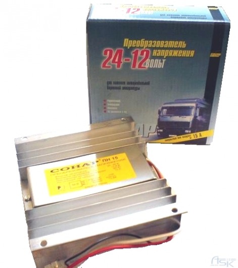 Преобразователь может устанавливаться в грузовых автомобилях, где напряжение в сети - 24 вольта.