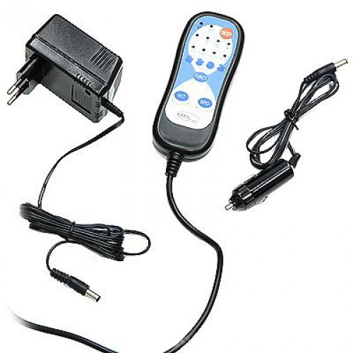 Массажный коврик подключается к автомобильной сети через гнездо прикуривателя и к бытовой электросети с помощью сетевого адаптера и управляется пультом дистанционного управления.