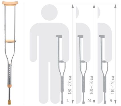 Вы можете выбрать костыли M, L, S размеров. Для этого выберите, пожалуйста, нужный вам размер в поле над ценой.