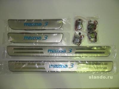 Светящиеся накладки на пороги Mazda 3 не входят ни в одну комплектацию этой модели автомобиля. Они позволят вам сделать свой автомобиль еще более оригинальным и стильным. Каждое открытие двери будет сопровождаться теплым синим или красным светом.