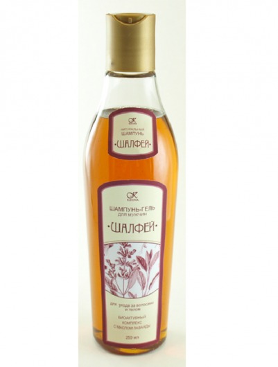 Шампунь-гель «Шалфей» предназначен для мужчин. Шалфей возвращает волосам силу, тонус и энергию, препятствует выпадению волос и облысению. Настой шишек хмеля, отвар коры дуба и эфирные масла лаванды, шалфея мускатного богаты витаминами, кислотами, смолами, эфирными маслами, воском, дубильными веществами. Натуральный шампунь значительно улучшает структуру волоса, очищает кожу головы и уменьшает ее жирность, одновременно заботясь о коже. Подходит для всех типов волос.