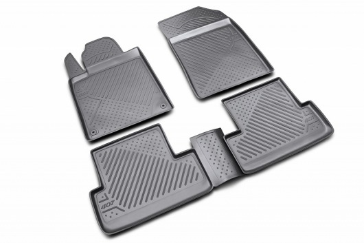 Полиуретановые коврики для автомобиля гладкие, приятные и не пропускают влагу. Черный цвет универсален и подойдет любому авто. В комплекте вы получите 4 коврика в салон автомобиля.