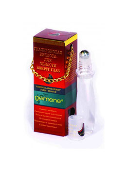 Металлический шарик, из медицинской стали, со специальными добавками, охлаждает, равномерно распределяет гель и создает массажно-дренажный эффект, улучшая микроциркуляцию крови, снимая отечность в области глаз. Сверхэффективное увлажняющее действие гиалуроновой кислоты возвращает наполненность коже, компенсируя сухость, зачастую возникающую в силу возрастных или внешних причин, таких как холод, чрезмерное воздействия солнца или ветра, сухой воздух в помещении. Гиалуроновая кислота оказывает подтягивающее действие, выравнивая мелкие морщины и уменьшая отечность.