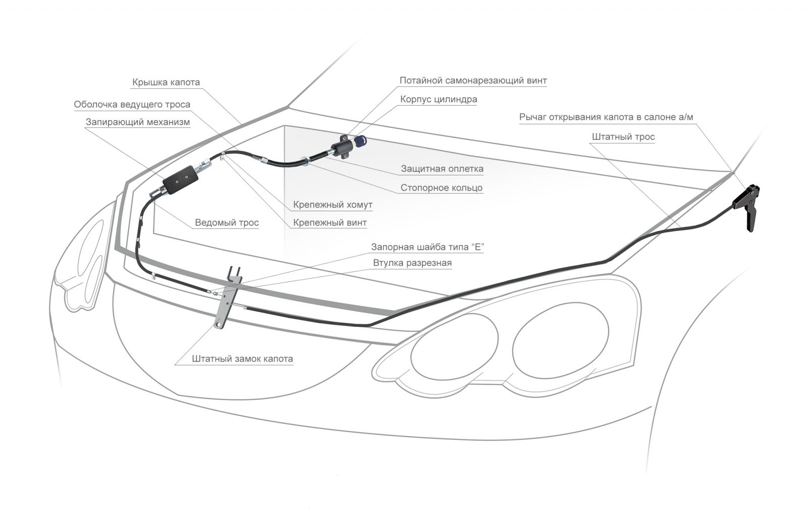 Механический замок капота Fortus Hood Lock "в противоход" защищает ваш автомобиль от угона. Противоугонное устройство - эта система блокировки, которая управляет запорным механизмом с помощью специального троса с гибким корпусом.