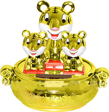 Три тигра AT-048 - превосходный сувенир в салон Вашего автомобиля из серии «Flip-Flap Фэнь-Шуй». Поднимет настроение Вам и Вашим пассажирам, заставит улыбнуться. Кроме того, сопутствует семейному счастью и достатку. Устанавливается на плоскую поверхность. Работает исключительно от фотоэлемента, не требует дополнительных источников питания. Игрушка абсолютно экологически чиста. Изготовлена из АВС-пластика.