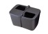 Контейнер для мусора FIZZ-845 изготовлен из черного прочного пластика. Для того, чтобы контейнер не переворачивался, в его дне установлен утяжелитель. Приспособление состоит из двух боксов, каждый из которых имеет крышку с отверстием для мусора. Размеры контейнера всего 275х170х160 мм, однако, этого вполне достаточно для хранения мусора между остановками.