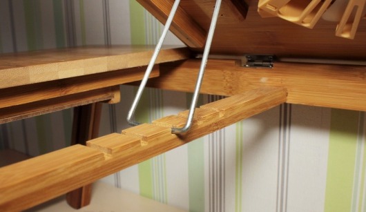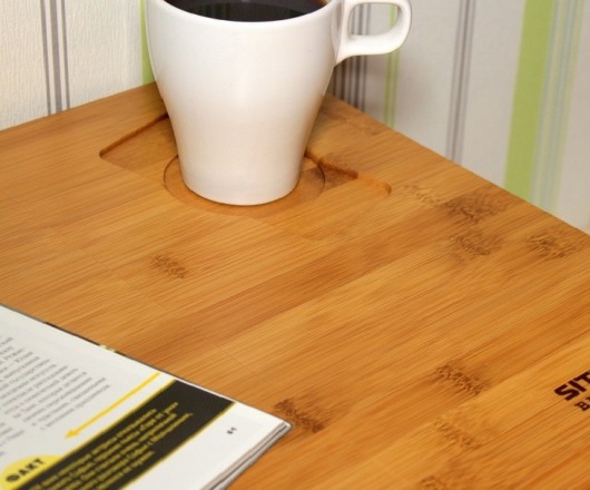 Углубление в верхней (неподвижной) части стола позволит поставить кружку или стакан, сделает их более устойчивыми на поверхности стола и поможет избежать падения.