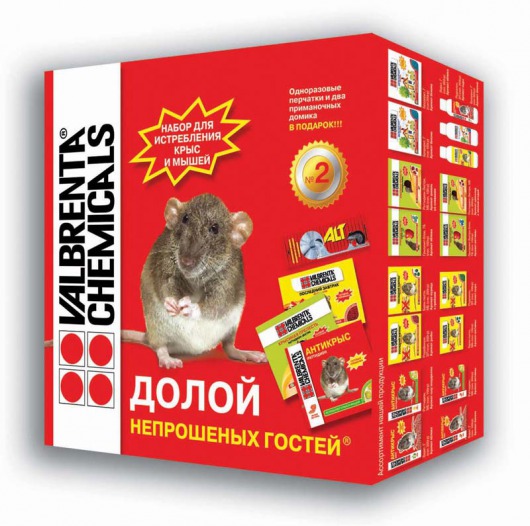 Набор №2 VALBRENTA CHEMICALS "Долой непрошенных гостей" предназначен для комплексного истребления всех видов крыс и мышей в любых помещениях и на прилегающих к ним территориях. В наборе подобрано оптимальное сочетание нескольких видов приманок с различными возможностями использования и различными ароматами, которые так привлекают грызунов.