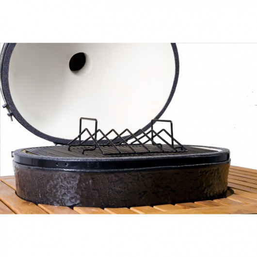 С помощью этой большой V-образной решетки вы сможете коптить в керамическом гриле Primo до 6 ребрышек одновременно — они получаются необыкновенно сочными и нежными. А в перевернутом виде решетка особенно удобна для приготовления больших кусков мяса и птицы.