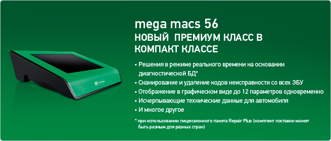 Hella Gutmann Mega Macs 56 - универсальный мультимарочный планшет для диагностики электронных блоков легковых автомобилей. Устройство представляет собой моноблок со встроенным сенсорным экраном диагональю 10.4", мощной аппаратной частью в защищенном корпусе, идеально подходящем для работы в сложных условиях автосервиса. Прибор управляется операционной системой Linux и оснащен большим количеством интерфейсов: беспроводная передача данных по протоколам Bluetooth и WiFi, порты USB, а также разъем для подключения мультиметра. Встроенный аккумулятор обеспечивает автономную работу на протяжении 5 часов.