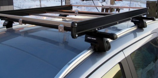 Грузовая платформа на крышу Mont Blanc Excursion устанавливается не на саму крышу автомобиля, а на багажник. Сначала необходимо закрепить на крыше поперечины багажника, а потом уже на них ставится платформа.