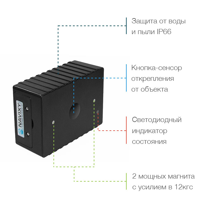 • Трекер с неразборным корпусом (встроенный аккумулятор, антенны GPS/GSM, 2 встроенных магнита)
