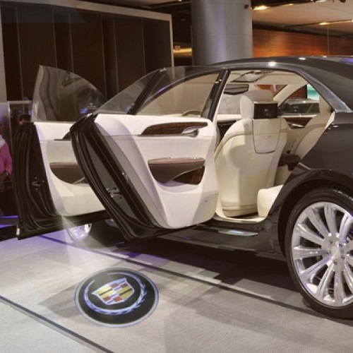 Подсветка с логотипом Кадиллак - новый нестандартный вариант тюнинга! В плафон подсветки двери устанавливается миниатюрный проектор, который выводит на асфальт четкое цветное изображение логотипа Cadillac. Картинка появляется, когда вы открываете дверь, и исчезает, когда дверь закрывается. Выглядит это очень стильно и необычно.