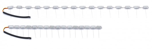 Гибкие дневные ходовые огни (DRL) Optima предназначена для установки в фары автомобиля. Может работать в 2-х режимах: для подсветки и индикации поворота, а также в режиме дневных ходовых огней (DRL). При повороте лента светит желтым светом, при движении прямо — белым. Диодная лента имеет гибкий корпус, поэтому может быть согнута в любом направлении.