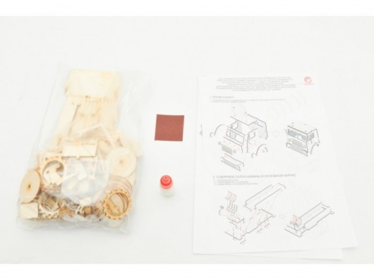 Детали конструктора Lemmo легко и в то же время интересно собираются в красивую и реалистичную игрушку-грузовик. При этом в набор входит клей ПВХ и наждачная бумага, с помощью которых ваш ребенок может собрать развивающий конструктор наиболее аккуратно. После сборки деревянного грузовика можно раскрасить его гуашевыми и акриловыми красками. В результате у вас дома появляется полноценный и красочный деревянный военный грузовик, у которого к тому же есть подвижные элементы (вращаются колеса). А это не может не обрадовать ценителей качественных и экологически чистых игрушек.