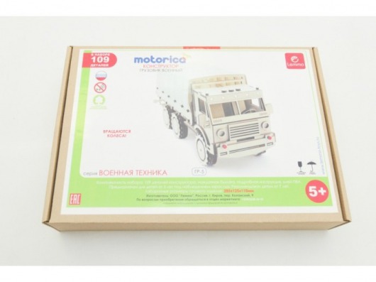 Деревянная игрушка Lemmo Военный Грузовик – это набор конструктора средней сложности (109 деталей), поэтому рекомендован для детей от семи лет. Дети помладше тоже могут собирать данный конструктор, но им понадобится помощь взрослых. Так, вы развлечете не только ребенка, но и себя.