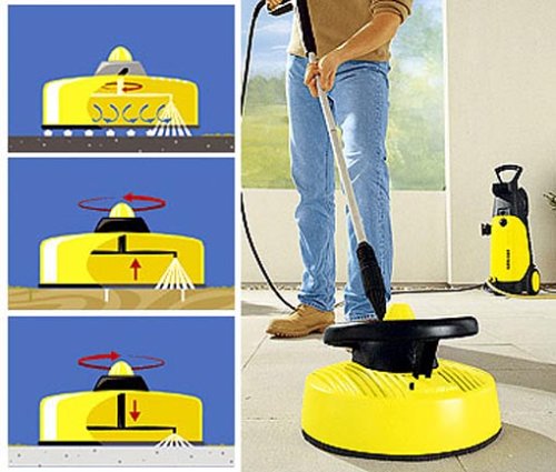 Karcher T-Racer T 300 просто создан для эффективной чистки плоских поверхностей. Вы без труда проведете уборку терасс, стен из камня или древесины. У насадки есть дополнительная ручка, которая облегчает очистку вертикальных площадей. К примеру, гаражных ворот.